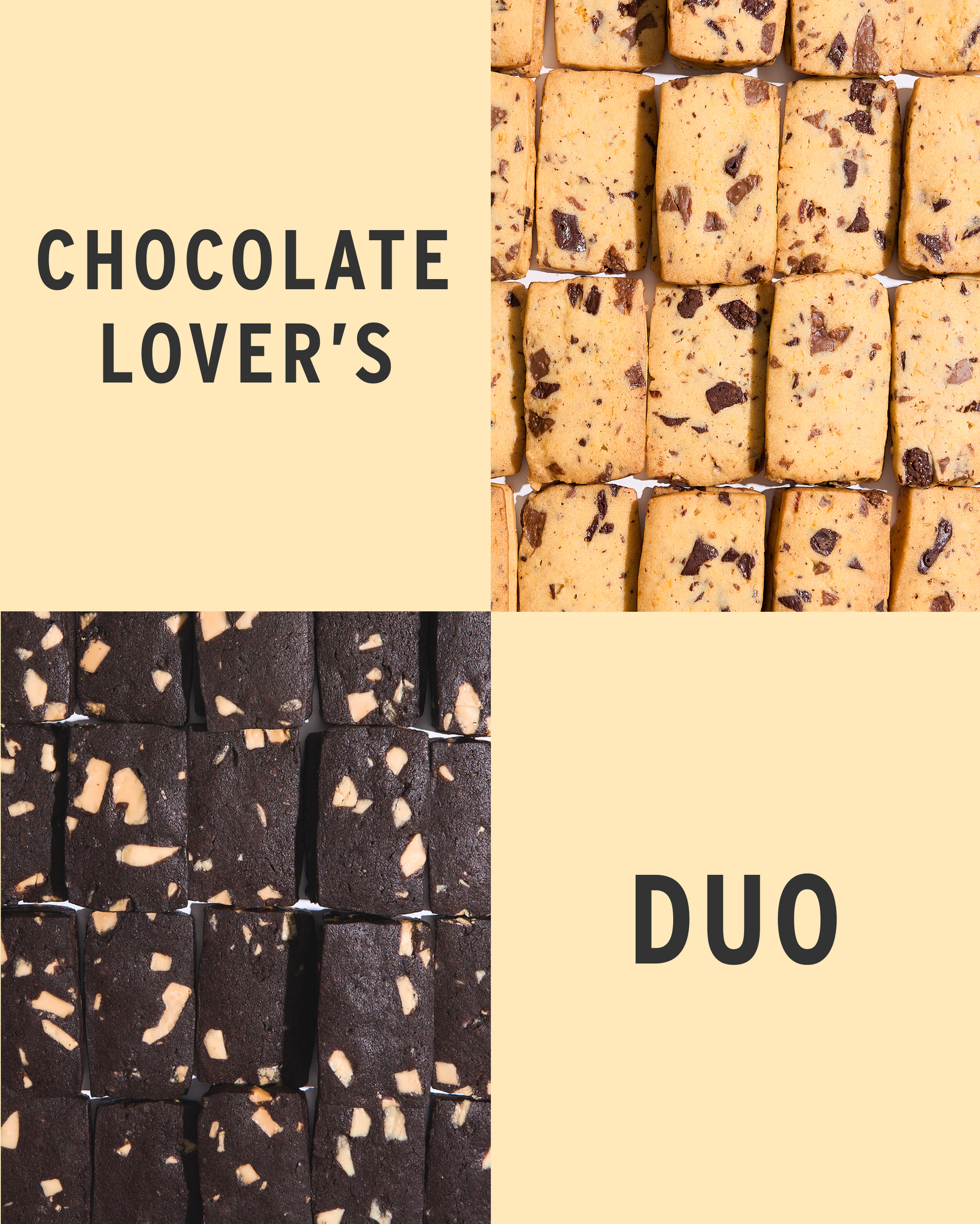 Get this duo of chocolate-enriched shortbread cookies to delight any chocoholic. Includes full-sized packs of Midnight Shortbread and Chocolate Orange Shortbread.