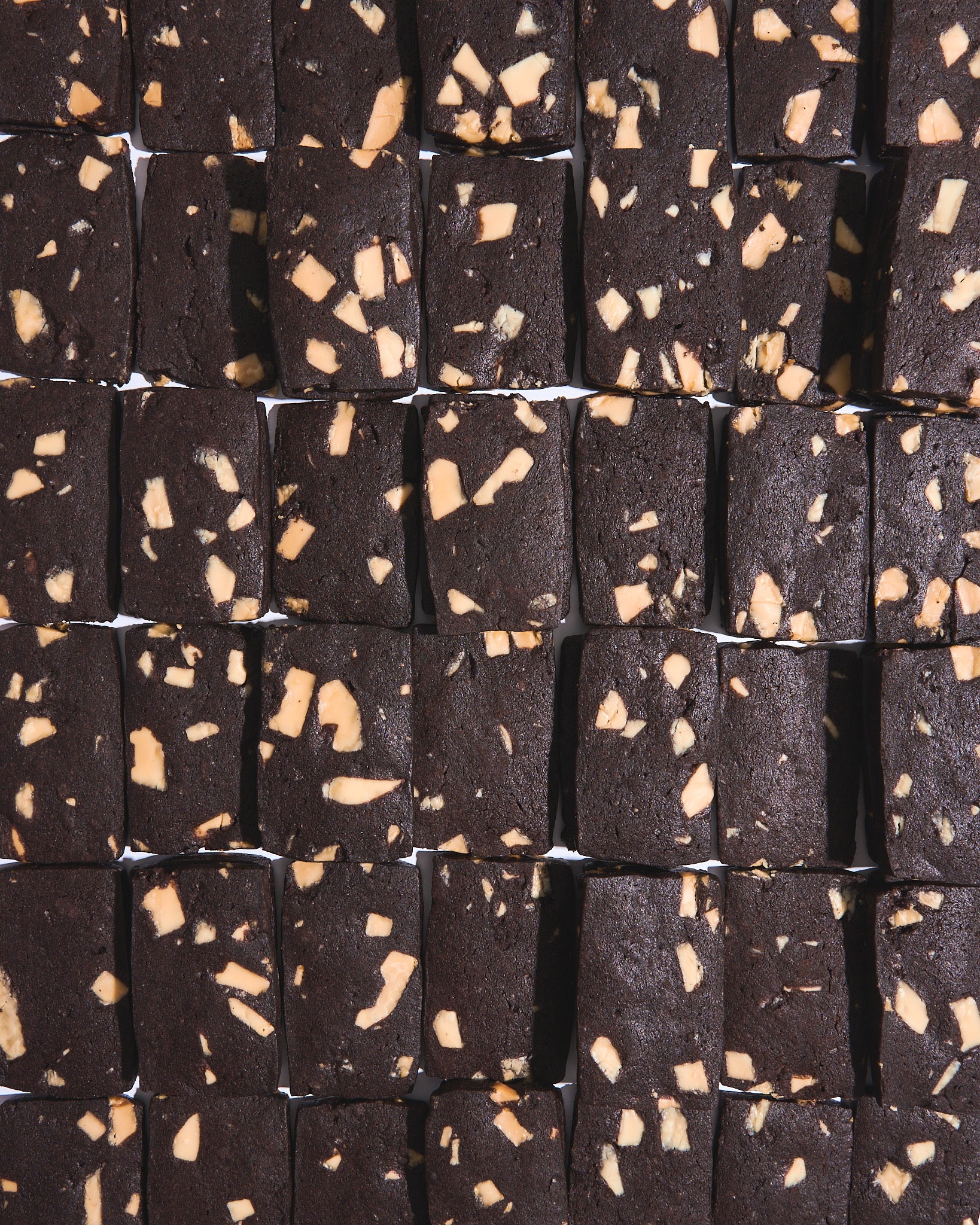 A toasty dark cocoa based shortbread with white chocolate caramelized to produce a distinctly adult flavor.